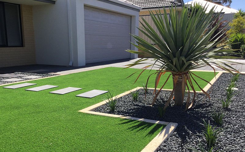 - Artificial grass options that stay green year-round with no watering